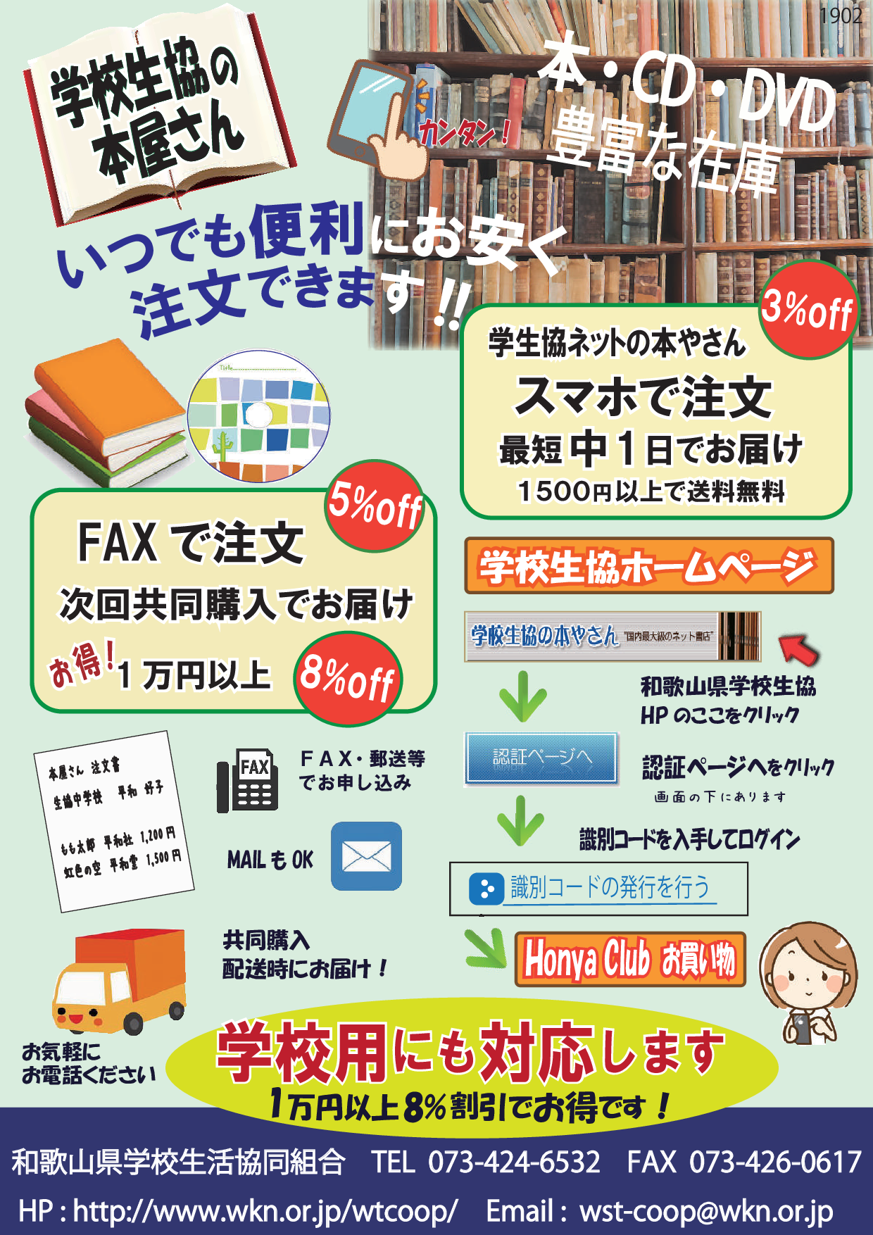 このホームページは和歌山県学校生活協同組合の組合員のためのホームページです。ホームページに掲載のサービス等は組合員以外の方はご利用できません。